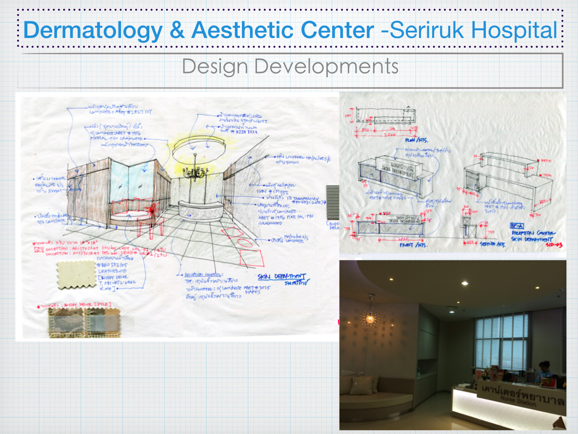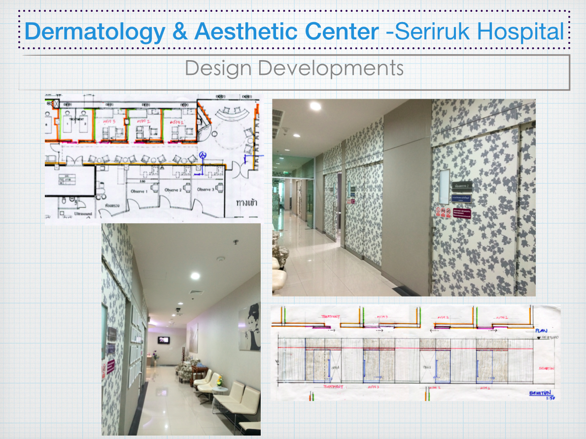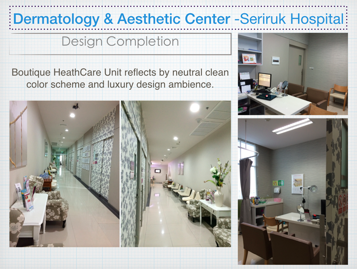 The new dermatology and aesthetic center of Serirak Hospital clearly exemplified this new trend in health care design. The interior architect, Chananya Apiwatpong, intended this new extension to be a “pleasant” place for patients and healthcare providers alike. The planning was tailored to the functions prescribed by doctors and nurses who reflected on their experiences which were used to shape rooms and allocations of furniture. Instead of the usual hygiene look, bold floral pattern was used on the panels to add life to the otherwise sterile waiting area. Stylistic furniture also toned down the cold ambient. The gallant decision was encouraged by the owner of the hospital who wanted to provide patients with special treatments apart from the usual services. This radical break from conservative design is a starting point in the development of design methodology for health care facilities that gears toward consumer-centered design instead of the prominent evidence-based design of the twenty first century.