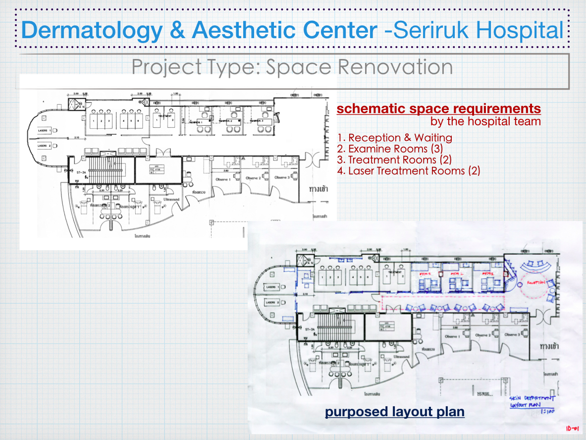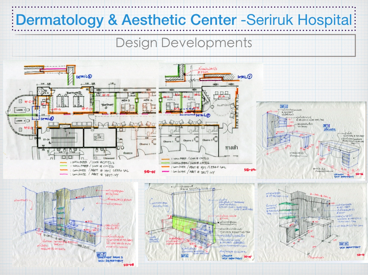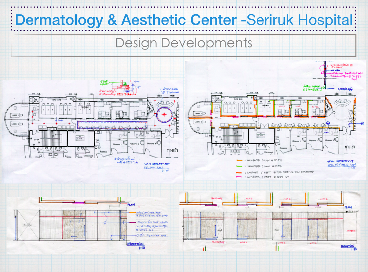 The new dermatology and aesthetic center of Serirak Hospital clearly exemplified this new trend in health care design. The interior architect, Chananya Apiwatpong, intended this new extension to be a “pleasant” place for patients and healthcare providers alike. The planning was tailored to the functions prescribed by doctors and nurses who reflected on their experiences which were used to shape rooms and allocations of furniture. Instead of the usual hygiene look, bold floral pattern was used on the panels to add life to the otherwise sterile waiting area. Stylistic furniture also toned down the cold ambient. The gallant decision was encouraged by the owner of the hospital who wanted to provide patients with special treatments apart from the usual services. This radical break from conservative design is a starting point in the development of design methodology for health care facilities that gears toward consumer-centered design instead of the prominent evidence-based design of the twenty first century.