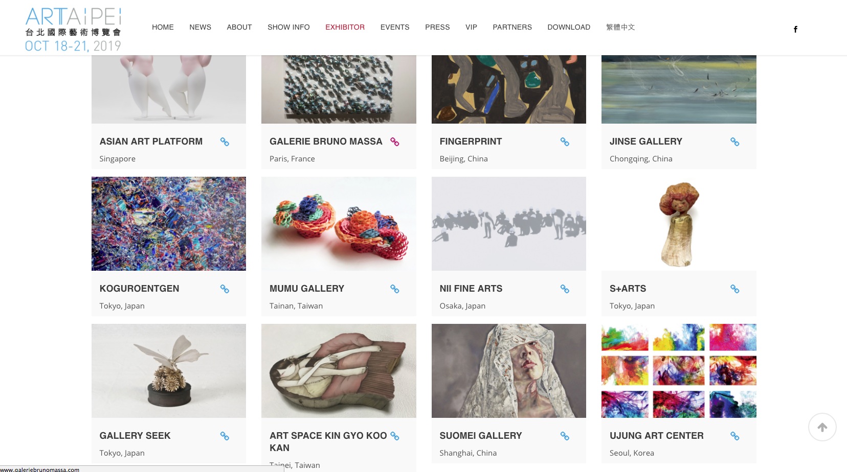 Organized by the Minister of Culture and Taiwan Art Gallery Association, MU MU Gallery:26th Art Taipei: Taipei World Trade Center, Taipei, Taiwan, October. 18-21, 2019.